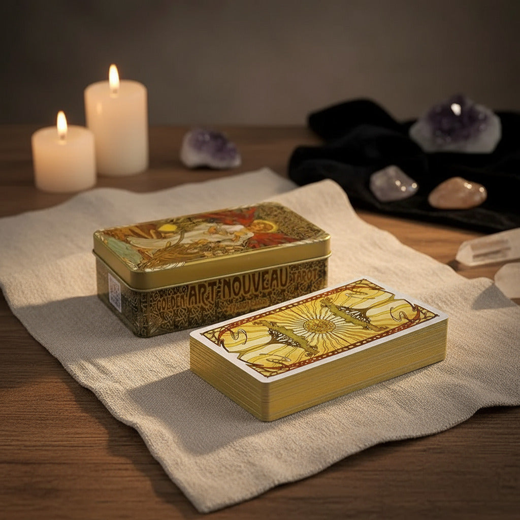 Golden Art Nouveau Tarot Deck - Elegant Mucha-Inspired Divination