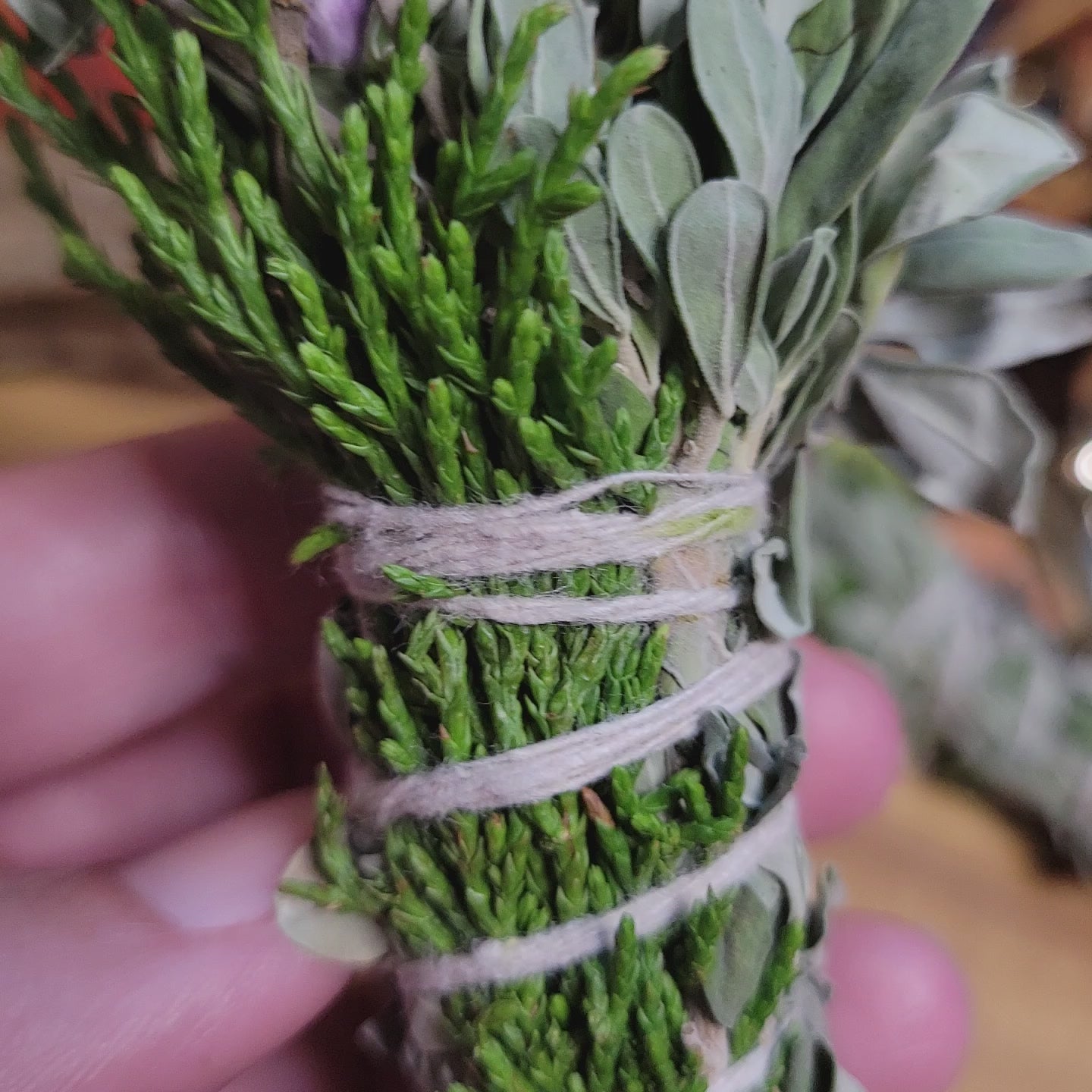 A quick but important note: Our Juniper is also botanically known as Mountain Cedar. If you or anyone in your household has a known sensitivity to Cedar or Juniper pollen, please be aware that burning this smudge stick may release allergens and potentially cause a reaction. We recommend using it in a well-ventilated area and testing your sensitivity with a small amount of smoke first. Your well-being is our top priority.